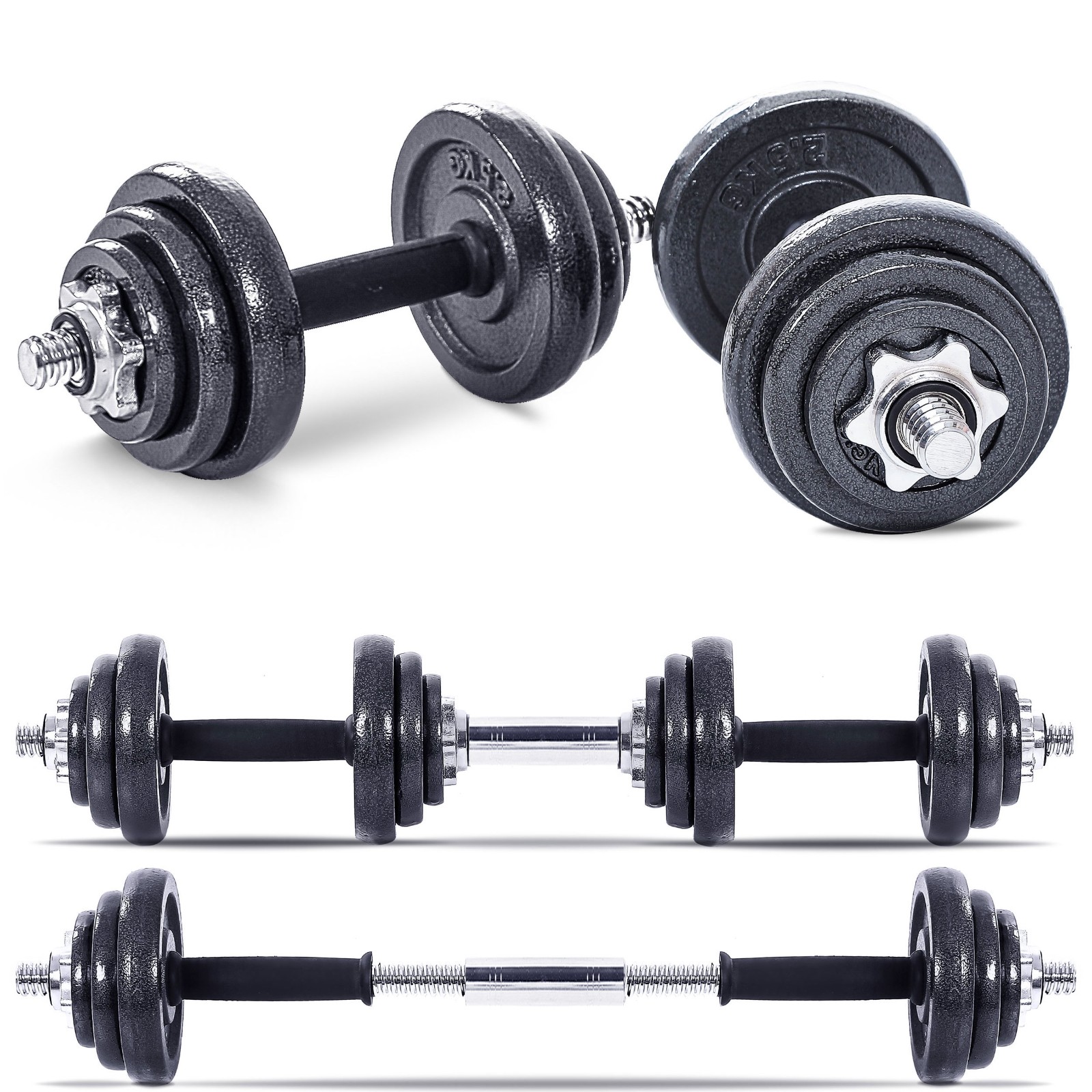 - Use with a standard bar or use as hands-on weights (without the bar) for weight assisted sit-ups, roman chair back extensions, overhead presses, lateral shoulder raises, oblique twists, etc.