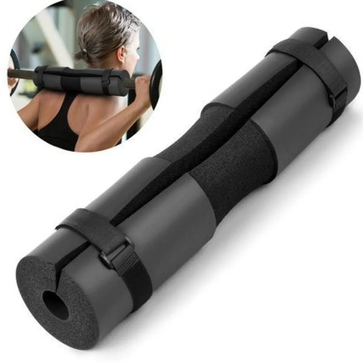 Help protect your shoulders and neck during squats with the Black Foam Barbell Pad. This barbell pad features thick 1.5″ foam padding to provide cushioning, which can reduce strain on your shoulders when performing heavy lifts and squats. The barbell pad will also aid in a firm grip of the bar when being used, helping to prevent the bar for slipping. The pad simply clamps snugly around the bar so that it will stay in place, allowing you to focus on your weight training. This barbell squat pad comes in black, is portable and lightweight, and is designed to be stored inside your gym bag or your locker. This weight bar pad is suitable for using in home gyms or professional training centers.
