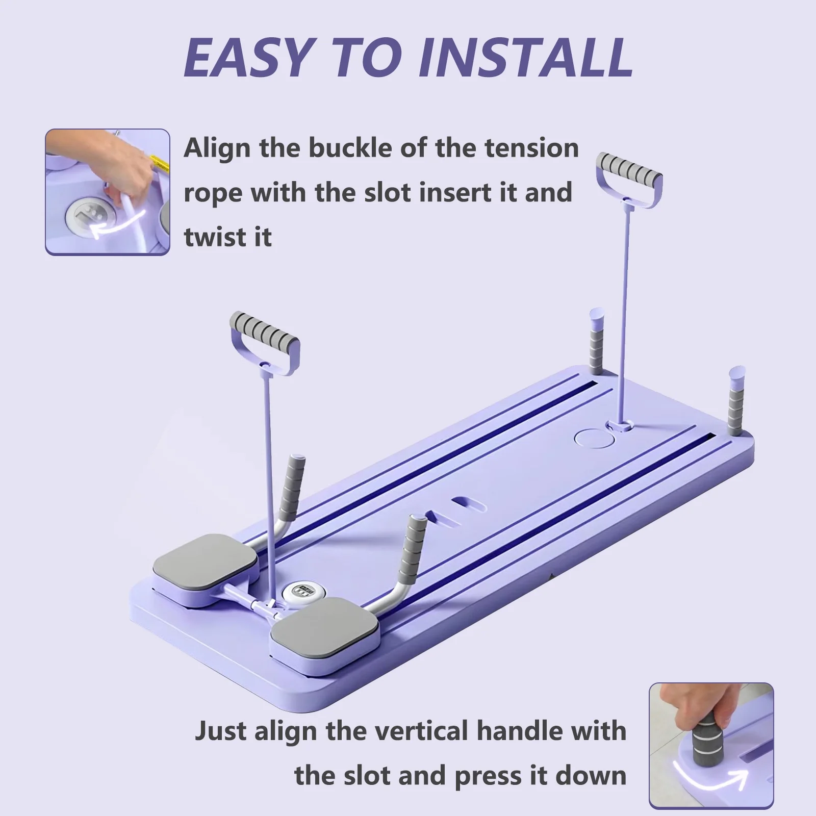 Thickened silicone resistance bands provide powerful rebound force, making it easy to get started on pilates workout. The 40 inches slide rail is suitable for various heights.
